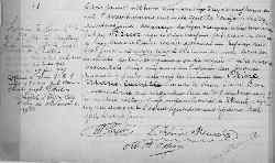 matin Pardevant nous maurice Perrelle adjoint délégué au deuxième arrondisst de Lyon a comparu le sieur Etienne Julien Brun. agé de vingt neuf ans. fabricant de soieries à Lyon. Rue du Plat 11. lequel a présenté un enfant du sexe féminin né avant hier à six heures du matin dans son domicile. de lui comparant et de marie victoire octavie Desautels. vingt cinq ans. sans profession son épouse. Auquel Enfant on a donné les Prénoms de Reine, marie. Camille. Présents les sieurs : Irénée Brun quarante deux ans. négociant Rue de la République 42 et michel ollion. vingt neuf ans. Rentier à Blidah (Algérie) lesquels ainsi que le Père ont signé avec nous le présent acte après Lecture faite. suivent les signatures Mentions marginales : Mariée à Lyon 2e le 26 7bre 1922 à Boiteux Jules marie Charles Joseph. Divorcée de Boiteux par jugt du tribunal Civil de la seine en date du 12 mars 1949 Transcrit le 29 juin 1949 Mariée à Paris 8e le 8 mars 1950 avec Jules Marie Charles Joseph Boiteux Décédée à Dijon-Côte d'or- le 16 décembre 1982- | |