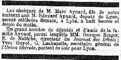 Fils de Pierre François dit Francisque AYNARD, négociant, et de Joséphine Lydie MAS.