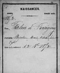 | Naissance de Napoléone Marie Magdeleine Lionnette FIALIN de PERSIGNY (1853-1880) | |