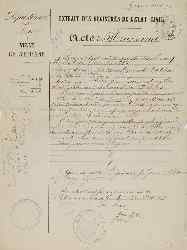 1292. L'an mil huit cent cinquante six le neuf Mai, à dix heures du matin, pardevant nous adjoint et officier de l'Etat-Civil de St Etienne (Loire) Est Comparu Victor Jean Guinard, agé de trente quatre ans, pharmacien, rue de foy 5, lequel nous a présenté un enfant du sexe Masculin, né dans son domicile : hier à cinq heures du soir, de lui déclarant et de Joséphine Prost, sa femme, agée de vingt sept ans, sans profession, auquel il a donné les prénoms de Marie Aimé Désiré, letout fait et lu en présence de Joseph Guinard, agé de trente cinq ans, négociant, place Marengo 9, oncle à l'enfant et de Jean Claude Vallette, agé de soixante deux ans, rue Gérentet 10, Soussignés avec nous et le père.