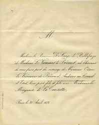 Mariage religieux Le VAVASSEUR de PRÉCOURT/de LA RIVOIRE de LA TOURETTE 1872)