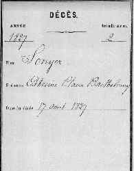 Décès de Catherine Claire Barthelemy SONYER DU LAC (1774-1827)