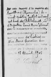 | Document : | Mention marginale acte naissance n° 4 du 8 mai 1870 à Hérouvillette |