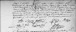 aujourdhuy onze Mars mil sept Cent quatre vingt treize, l'an second de la République française. Pardevant Nous Etienne Roux officier public en La Municipalité de Lyon sont Comparus le Citoyen Joseph Gabriel Celle demeurant à St Didier District de Monistrol Departement de la haut Loire, fils majeur & Légitime de deffunt Jean-Baptiste Celle qui étoit habitant du même Lieu & de Marguerite Pichon sa veuve d'une part, Et La citoyenne Catherine Claire Barthelemie Sonyer demeurante à Lyon Chez la Citoyenne anne Crozet institutrice rue de la Gerbe, fille mineure & Legitime de deffunt Jean François Marcelin Sonyer qui étoit homme de Loy aud(it) St Didier & de Pierrette Baroud son Epouze, procedant en la présence, consentement & authorité du Citoyen Jean André Zacharie soulier homme de Loy aud(it) St Didier ce jour a Lyon, fondé des procurations des Citoyens Jacques Jean Baptiste Baroud Canson demeurant à annonay Département de L'ardêche son oncle maternel & de Denis Augustin Sonyer Dulac son grand oncle, médecin aud(it) St Didier La première passée le vingt Cinq fevrier dernier devant Malgantier(?) notaire public à Annonay enregistrée et légalisée, et la Seconde passée le vingt sept du même mois devant Terme notaire public à St Just même district et departement de la haute Loire, aussi enregistrée et légalisée; l'une desd(i)tes procurations delivrée en Brévet et l'autre en expédition et remises pour être jointes aux publications de ce mariage # d'autre Part. lesquels futurs époux Procédant Comme Libres pour Contracter mariage en vertu de leurs promesses duëment Publiées enregistrées et affichées à l'egard du futur, en la municipalité dud(it) St Didier le Trois du présent mois et à l'égard de la future le même jour, en Cette municipalité de Lyon le tout Conformement à la loi du vingt septembre dernier sans qu'il ait parû aucune opposition prévuë par la ditte Loi nous ont déclaré à haute et intelligible voix se prendre librement et volontairement pour époux d'après laquelle déclaration nous officiers susdits avons prononcé au nom de la loi que Joseph Gabriel Celle et Claire Catherine Sonier sont bien et duëment unis En mariage dont nous avons rédigé acte en le maison Commune En présence du Citoyen Jean antoine Molin vicaire métropolitain de Cette ville Denis malet négotiant à St Etienne Pierre françois De Chatelus notaire Public a lyon et Charles forges décinateur ruë Clément Témoins majeurs signés avec les Epoux. ledit Citoyen zacarie X° et nous. # lesdits Citoyens Baroud Cancon et Sonier Dulac Tuteurs nommés et désignés à la future par le Testament dud(it) Citoyen Sonier Pere [dans son dernier Testament] en datte du Trois mars mil sept Cents quatre vingt douze déposé aud(it) Terme notaire duëment enregistré le vingt six du même mois X° Soulier Les Renvois approuvés et la rature de quatre mots.