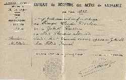 | Document : | Extrait d'acte de naissance n° 1230 en date du 15 mai 1951 |