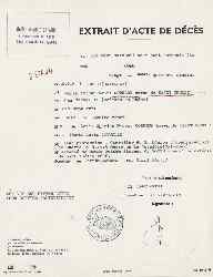 | Document : | Extrait acte de décès en date du 9 avril 1970 |