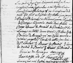 Né le 20, il eut pour parrain noble Louis François ADHÉMAR de MONTEIL de BRUNIER, sieur de Larnage, et pour marraine dame Marie Claudine ADHÉMAR de MONTEIL de BRUNIER de LARNAGE, qui signent.