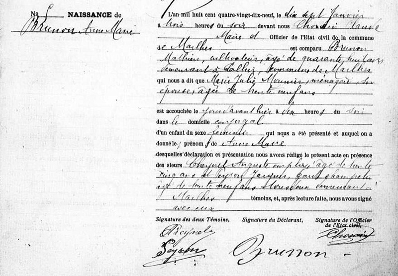 Naissance : 15 janvier 1899 à Marlhes 42 au domicile parental, à Lallier ( Source )