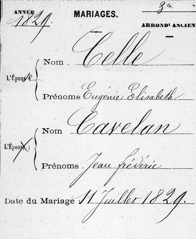 Union : CELLE Eugénie Elisabeth ( 1812 - ? )