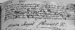 Née la veille sur les 5 heures du matin, elle eut pour parrain Antoine ALLOUES, sieur de La Fayette et de Malescours, habitant de Saint-Didier, et pour marraine demoiselle Marie CHAPUIS, femme de sieur Jacques Louis COSTE, maître chirurgien et apothicaire de Saint-Didier, habitant de présent au lieu de Bouzat, qui signent.