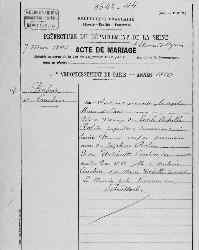 Mariage : 7 mars 1840 à Paris (4ème) 75 ( Source )
