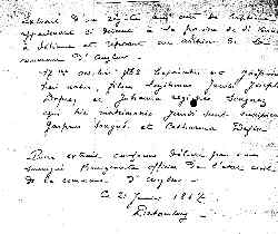 Acte n° 59. Mariés par Monsieur Hyppolite RENARD, adjoint au maire. Témoins : Jean Nicolas MAUROIS, négociant, François LOISY, constructeur mécanicien, Joseph CUVELIER, constructeur mécanicien, Armand CABARRY, ingénieur aux mines d'Anzin. (voir courrier novembre 2009 de Christian Deprez).