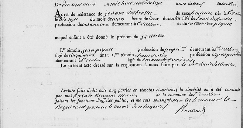 Témoins :DESBROSSES Guillaume ( 1769 - 1840 )