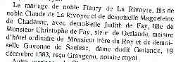 Mariage par contrat : 19 décembre 1583 GRANGEON, notaire royal ( Source )