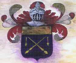 Armes : d'azur, à deux lances d'or, passées en sautoir, ferrées d'argent et virolées de gueules aux deux extrimités, le fer de chaque lance recourbé en dehors; à un chef d'or.