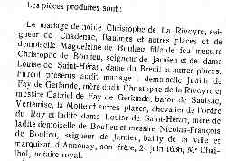 Cote A.D. B 5. Ou 24 juin, ou 26 juin, selon les sources. Furent présent demoiselle Judith de FAY de GERLANDE, mère dudit Christophe de LA RIVOYRE et messire Gabriel de FAY de GERLANDE, baron de Saulsac, Vertemise, la Motte et autres places, chevalier de l'ordre du Roy, dame Louise de SAINT-HÉRAN, mère de ladite demoiselle de BOULIEU et messire Nicolas François de BOULIEU, bailly de la ville et marquisat d'Annonay, son frère.