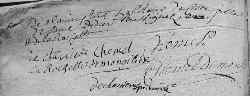 Né la veille sur les quatre heures du matin, il eut pour parrain messire Antoine CHOMEL, et pour marraine dame Catherine de CLAVIERES, qui signent aveclepère.