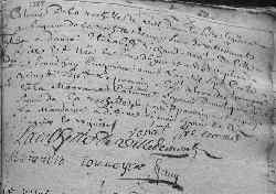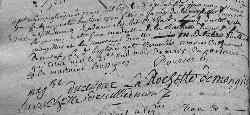 Née la veille, elle eut pour parrain Alexandre ROMEYER, qui signe, et pour marraine Catherine PEYRARD, qui ne sait signer, domestiques dudit sieur de La ROCHETTE, père de l'enfant.