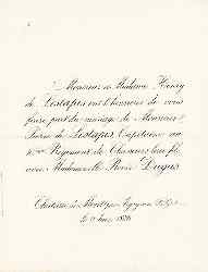 Note individuelle : Capitaine au 10ème régiment de Chasseurs, à son mariage, en 6/1886.