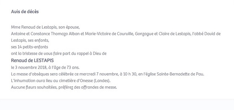 Bien que né en Normandie, Samuel de LESTAPIS était issu d'une ancienne famille béarnaise qui a fourni de nombreux officiers à l'armée française, dont deux généraux, et il était lui-même fils d'un officier de carrière.