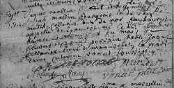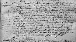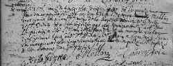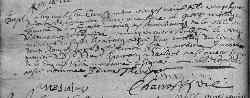 Né le même jour, il eut pour parrain sieur Jean de La FAYETTE, quisigne avec le père, et pour marraine Ysabeau DELHOMME, quine sait signer, tous deux de Saint-Didier.
