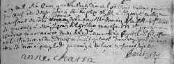 Né la veille environ trois heures après midi, ileut pour parrain sieur Jean DELHOME, qui ne sait signer, et pour marraine Anne CHARRAS, mère de ladite Jeanne de La FAYETTE, qui signe.