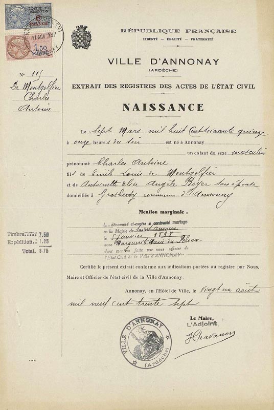 MONTGOLFIER (de ) Charles Henri Marie