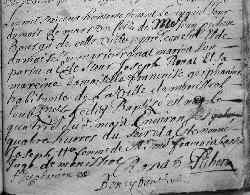 Né la veille sur les quatre heures su soir, il eut pour parrain sieur Joseph RONAT, et pour marraine demoiselle Françoise GERPHANION, habitante de la ville de Monistrol, femme de messire François BASSET, juge de Monistrol, qui signent.