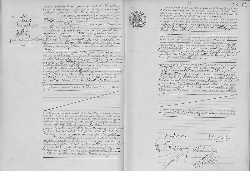 Contrat de mariage : 4 novembre 1907 à Nice 06 reçu maître Jean GIRARD, notaire Mariage : 4 décembre 1907 à Nice 06 ( Source )