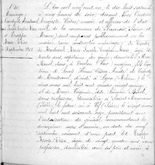 Note individuelle : Capitaine du Génie, domicilié à Toulon (83), 2 rue Revel, à son mariage, en 9/1901.