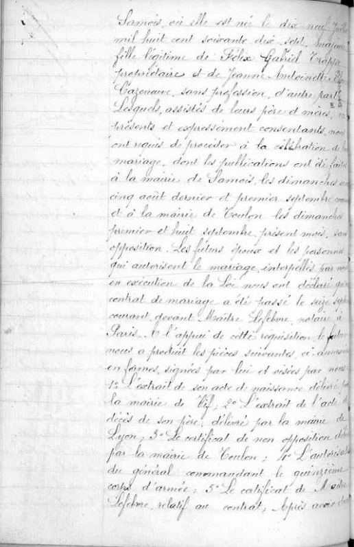 Mariage autorisé par le général commandant le 15ème Corps d'Armée, le 9 septembre 1901.