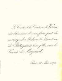 Note individuelle : Veuve de Marie Charles Gustave, comte de BOISGUYON, et fille de Paul Ludovic Alexandre, comte de VIRIEU, et de Louise Charlotte BAUDENET d'ANNOUX.