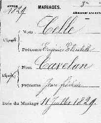 Mariage : 11 juillet 1829 à Paris (3ème) 75 ( Source )