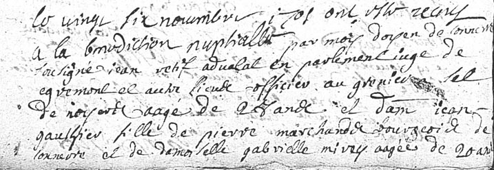 Mariage religieux : 26 novembre 1705 à Tonnerre 89 paroisse Notre-Dame ( Source )
