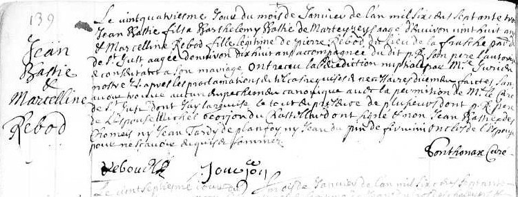 Union : REBOUD Marcelline ( 1653 - > 1704 )