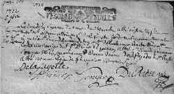 Né la veille, il eut pour parrain sieur Christophle ALLOÜES, bourgeois, et pour marraine dame Catherine ALLOÜES de SINEREILLES, du faubourg de Montfaucon, qui signent.