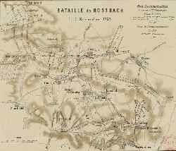 Le roi, risquant le tout pour le tout, se met à la tête de son armée et va au-devant de l'adversaire. À Rossbach, à 35 kilomètres au sud-ouest de Leipzig, les alliés franco-autrichiens entreprennent de contourner son camp.