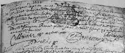 Née le 27, elle eut pour parrain messire Antoine VERON, et pour marraine demoiselle Catherine RONAT, habitants de Saint-Didier, qui signent.