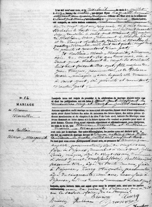 Contrat de mariage : 4 juillet 1903 à Saint-Didier-la-Séauve 43 devant maître THOMAS, notaire Mariage : 18 juillet 1903 à Saint-Just-Malmont 43 ( Source )