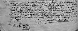 Née le même jour, elle eut pour parrain Antoine ALLOÜES, sieur de Lafayette, avocat en parlement, juge de la juridiction de La Séauve, et pour marraine Anne ALLOÜES, fille dudit sieur de Lafayette, qui signent.